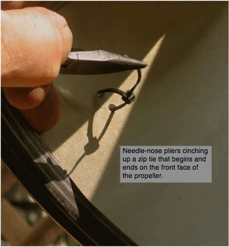 Las cuchillas con la hoja de plantilla en la parte superior de la pila, sujetarlos con abrazaderas al menos dos y 1/8" perforar a través de la pila. Monte las palas de la rueda, a partir de todos los lazos zip en las caras delanteras para que no pueden enganchar la correa en un viento. Les apriete con baja tensión y recorte los extremos sueltos.