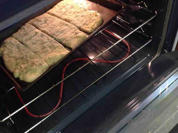 -Poner el pan en un horno de 170 grados durante unos 7-10 minutos. Los picos se eleva cerca de 1 pulgada.
