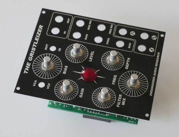 Inserte los ejes del potenciómetro a través de los orificios del panel frontal. Puede que necesite doblar y enderezar un poco las macetas. Lo importante aquí es no los jam en su lugar. También quiere asegurarse de que el LED es estar correctamente en la lente. Una vez que todas las macetas están sentados y el LED se encuentra directamente debajo de la lente, ajuste el potenciómetro con su arandela y tuerca. Tenga cuidado de no sobre-apriete los: sólo necesitan que quede apretado a mano. Una vez haya terminado, coloque el módulo a un lado por un momento.