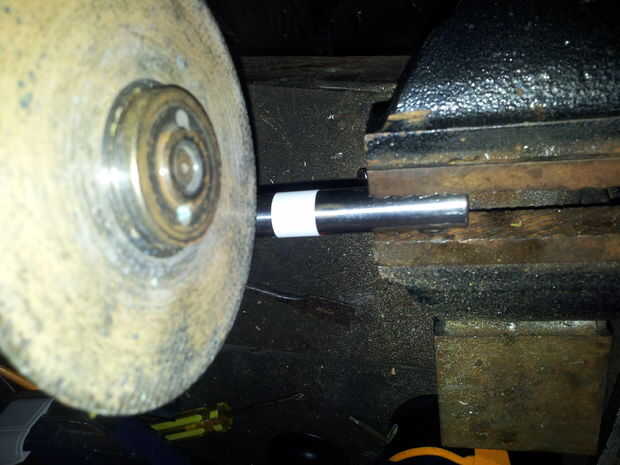 Para empezar, necesitarás hacer la entrada en el vaso utilizando la broca de paso. Debe ser aproximadamente 1/2" de ancho y 2.5" de la base. La longitud del tubo de salida, en el fuelle se ajusta a unos 1.25" de largo y los fuelles se montan en el cartucho utilizando las tiras de latón.