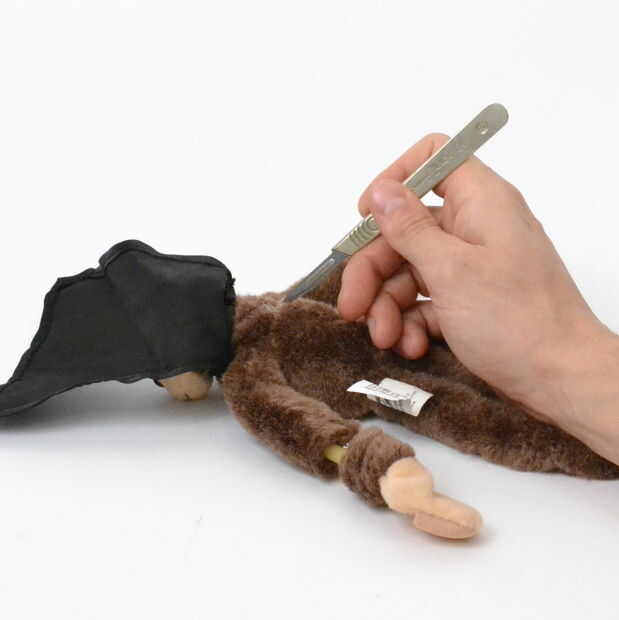 Corte cuidadosamente a lo largo de las costuras, sacar la máquina de ruido y luego la costura hacia arriba. Ahora tienes un mono super stealth y un generador de ruido.
