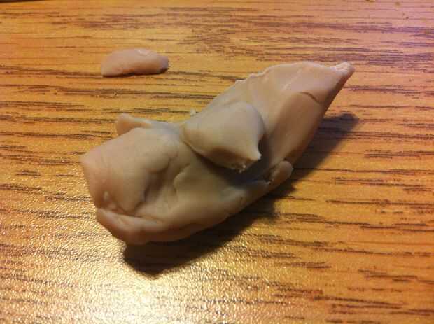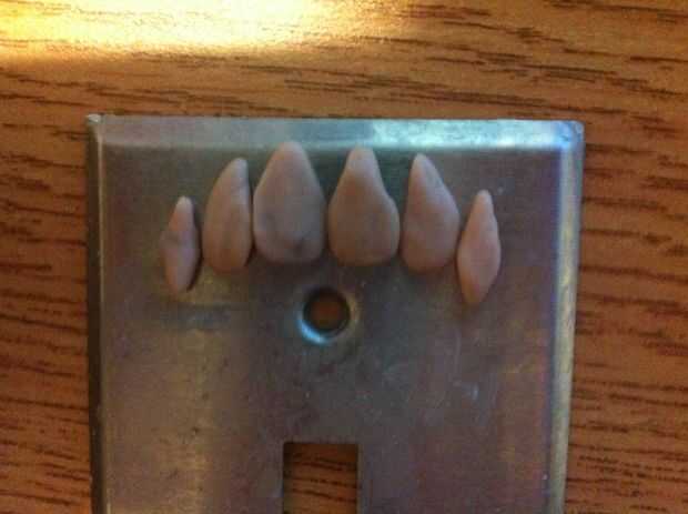 En primer lugar, necesita algún barro o arcilla polimérica para esculpir unos dientes. Puedes hacer tantos como quieras, hice 6 de ellas para cada lado de la boca. A continuación, tienes que cocer en el horno con el tiempo propre dependiendo del material que está utilizando.