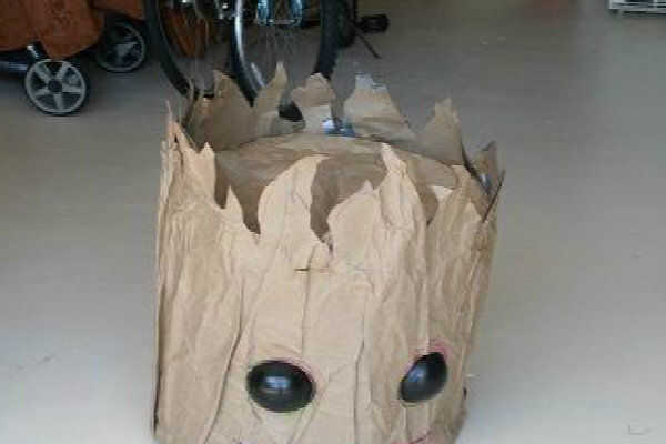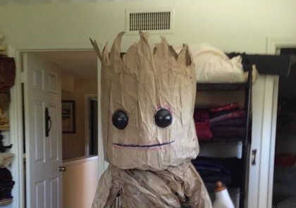 El traje de Groot bebé bailar que he creado se hace enteramente de papel, cinta adhesiva y pegamento. Quería tratar de hacer un traje de papel y un árbol como personaje es perfecto para esto.