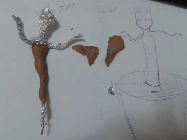De todas formas, cubren la totalidad de su modelo con una fina capa de arcilla de elegido. Luego agregar algunos más arcilla para dar la forma específica de groot, como en el torso y la cabeza.
