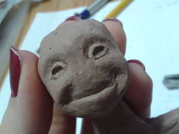Que exagerados le cuenta un poco para hacerle más vitalidad, como los hoyuelos, añadir un montón de arcilla debajo de los ojos para hacer su sonrisa "alcanzar el ojo".