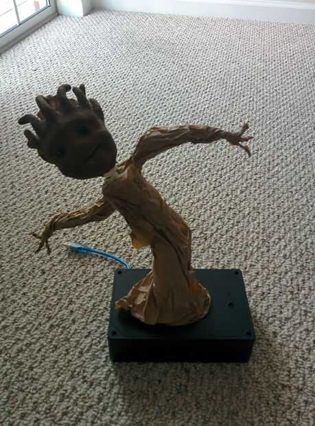 un juguete para nuestro hijo de 3 meses de edad (soy el abuelo) para mantener su atención por utilizando el sonido y luz incorporados en una flor de ikea. Este estaba montado en su basinet. Utiliza una placa de microcontrolador arduino decimillia, Bi