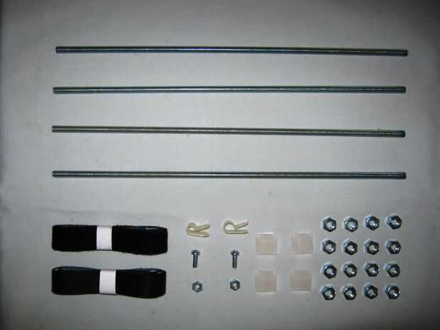 - Dos pequeños tornillos y las tuercas de las abrazaderas de alambre (ver foto abajo).
