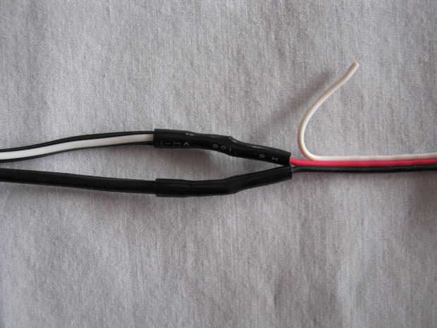 4. Añadir dos trozos de calor tubo termoencogible para los cables como se muestra en la foto sexta. El propósito del tubería del encogimiento del calor será aislar los cables. Si no tienes calor tubería del encogimiento, puede envolver la cinta aislante alrededor de las conexiones después de haber terminado el soldado paso a continuación.