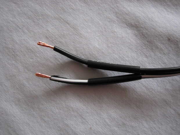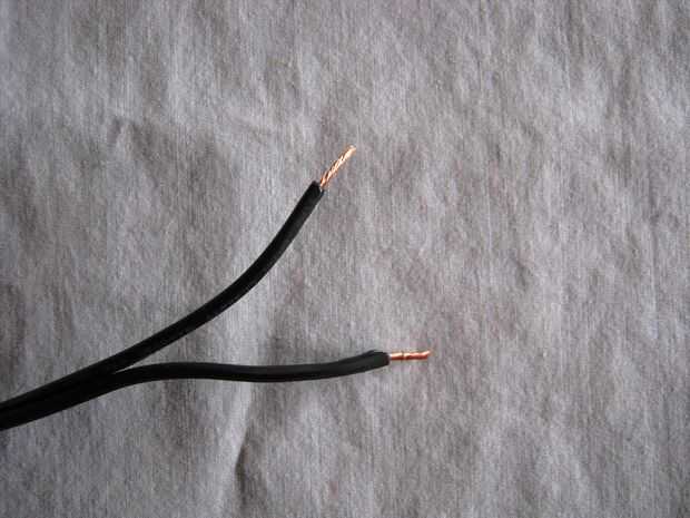 2. Separe los cables y tira de un 1/8" de aislante de los extremos de los alambres como se muestra en la tercera foto.