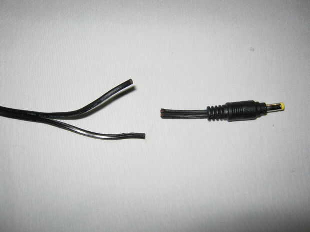 1. Cortar la punta en el extremo del cable de alimentación de la fuente como se muestra en la segunda foto. Este Consejo no utilizar y puede ser descartado o guardado para un futuro instructable.