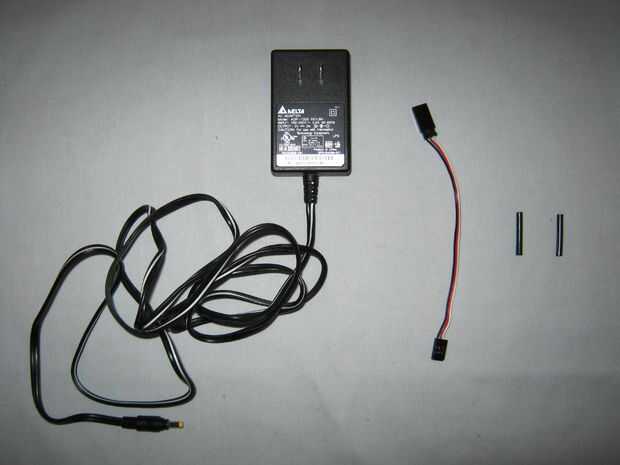 De Grover Groovin 'microcontrolador se alimenta mediante el cable USB pero sus servos requieren más energía que puede suministrar un puerto USB por lo que en este paso, una verruga de la pared de 5 volt (adaptador) será adaptada para suministrar energía a los servos. Una fuente típica se muestra en la primera foto.