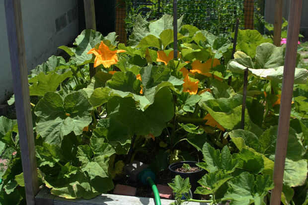 La primera sorpresa fue mi planta de calabaza que piensa que va a asumir el control el mundo. Yo estoy "entrenamiento" lo mejor que puede ahora mismo, pero puede terminar encima de tener que frenar su entusiasmo si no aprende.