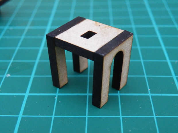 Las piernas se fijan juntos (con más pegamento) como una pequeña mesa - tome nota de que manera redonda es el agujero del recorte.