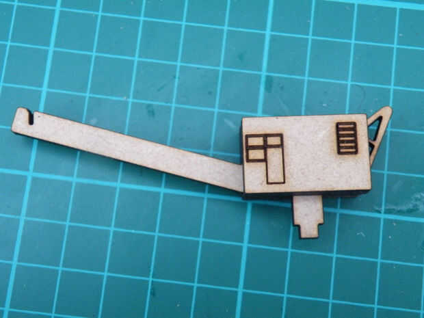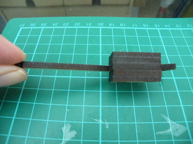 Finalmente, el puesto en el cuerpo principal encaja perfectamente en el cut-out en las piernas y se puede fijar firmemente con una última gota de pegamento.