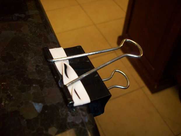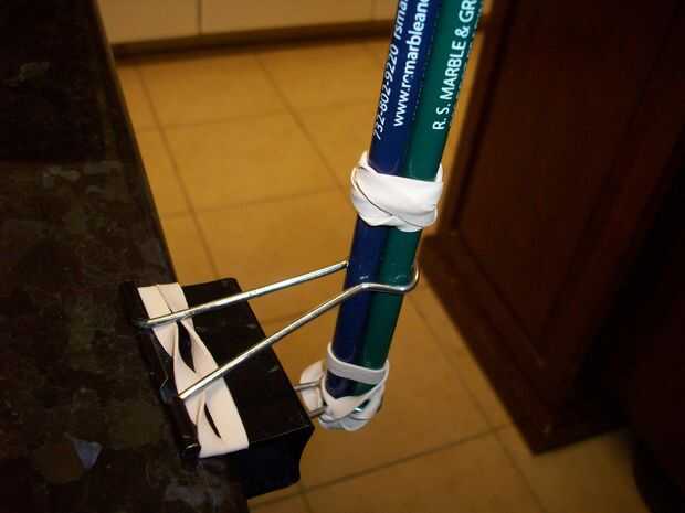 clip binder como base y clip para el lado de un escritorio o estante del lado. puede Agregar una banda de goma para la tracción adicional. Luego inserte torre clip binder y coloque en la parte inferior con goma.