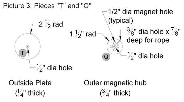 Taladros de 1/2 pulgada diámetro maget 9/16" del centro de la pieza"Q"y"S"como se muestra en la imagen superior derecha.