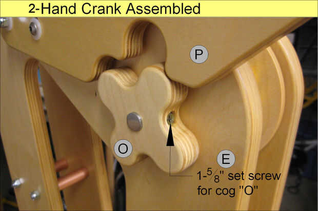 Instalar el piñón de freno como se muestra en la imagen siguiente usando un 1-5/8" oro grueso tornillo de ajuste. La varilla de acero de 1/2" tendrá que ser cortado fuera de la corona de freno"O"y en el otro lado de la grúa con la manivela de"N". Se recomienda hacerlo después de instalación el piñón de freno y manija inestable. Ver imagen #2 a continuación.