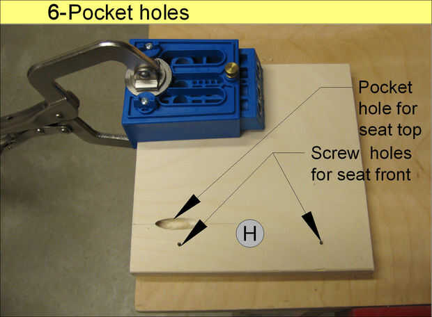 Perforar agujeros de bolsillo para la parte superior del asiento y los agujeros para sujetar el respaldo a los lados del asiento y los laterales del asiento en la parte delantera del asiento. Ver cuadro #6.