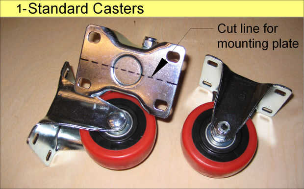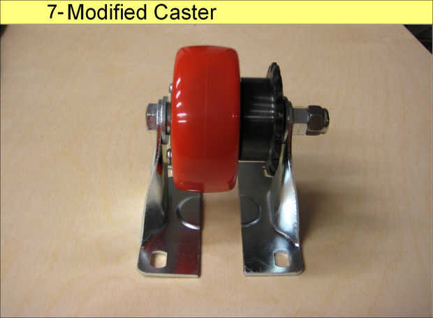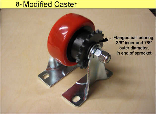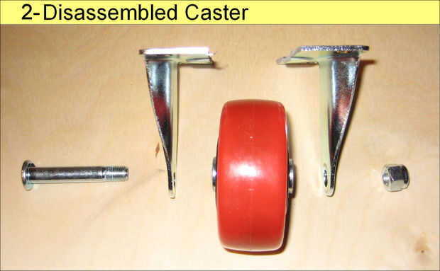 Attche las ruedas en la base con 1/4" diámetro x 1-1/4" tornillos de máquina de cabeza redonda larga. Utilice un 1/4" cierre lavadora y 1/4" tuerca de nyloc de mantener las ruedas de trabajo suelta. Ver cuadro #9 abajo.
