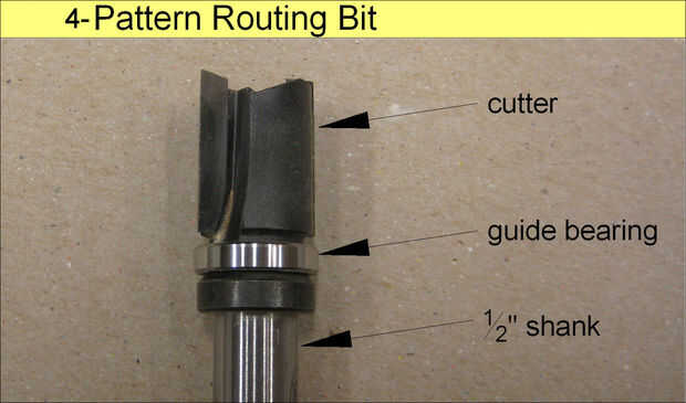 Puede utilizarse una broca corte al ras (Guía del cojinete en la parte inferior). Ver cuadro #4 abajo. Simplemente colocar la pieza de plantilla en la parte inferior y que la altura del router esté ajustada correctamente por lo que la guía de paseos por el borde de la pieza que está copiando.
