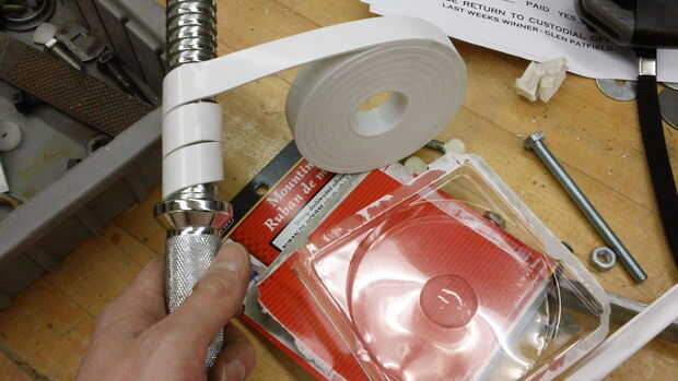 2. Envuelva un extremo de la rosca de la barra en la cinta de montaje doble cara. Si tienes la cinta derecha esto debe ser una fricción ajustado encajar.