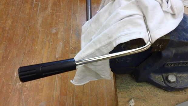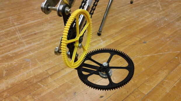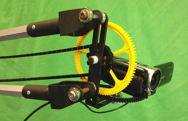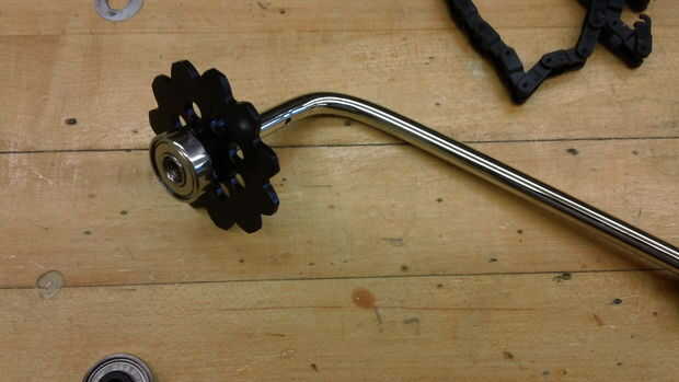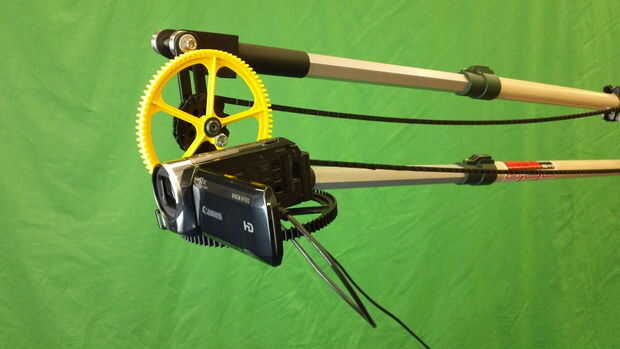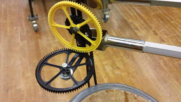 - He doblado un viejo mango de trípode y adjunta el engranaje al eje.