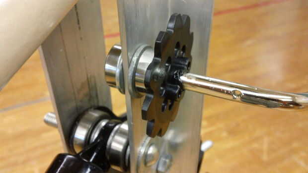 - He instalado un equipo de apoyo medio encima del polo superior para tomar la holgura en la cadena al invertir las direcciones.