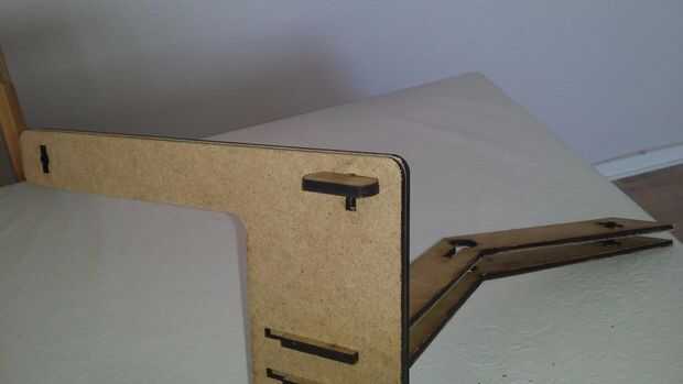 Estas piezas se utilizan para fijar entre sí. Para empezar, alineando los agujeros rectangulares de las piezas de la parte dos inferior (G1-G2), con simpatia, con G2 en la parte superior. Luego empuje las piezas de pedestal a través de los orificios, como se muestra en la primera foto. Entonces usted simplemente empuje G1 en su lugar, para que estén alineados los contornos exteriores de las partes.