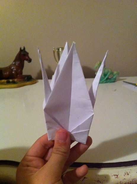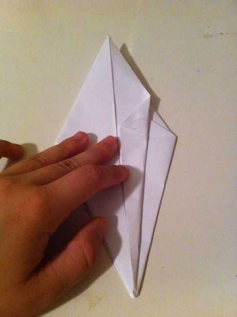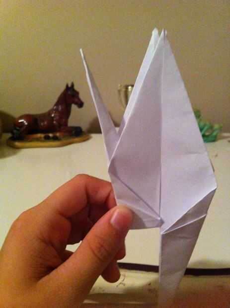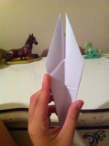 CONGRATULATIONS! Usted ha hecho por medio de la peor parte! Ahora es cuando realmente ves el pájaro que viene a la vida. En primer lugar, tome la parte exterior de la parte inferior del cuerpo y doblar por la mitad. Repita en todos los lados. Ahora se abre una de las solapas y habrá una línea de pre arrugada. Doble su parte y en al doblarlo por la mitad. Repita en el otro lado.