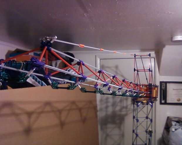 Carga máxima: aprox. 1 libra (sí, es una mierda; K'NEX no fue diseñado para manejar grandes cargas sin una excesiva cantidad de piezas a su propia estructura de soporte)