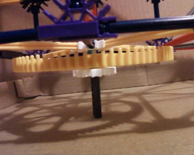 subió con una hélice grande que se puede hacer para apilarse encima de sí mismo. Se hace para las máquinas de la bola de K'nex y sólo funciona con las bolas de K'nex originales. Este elemento requiere sin embargo muy pocas piezas, pero el producto fi