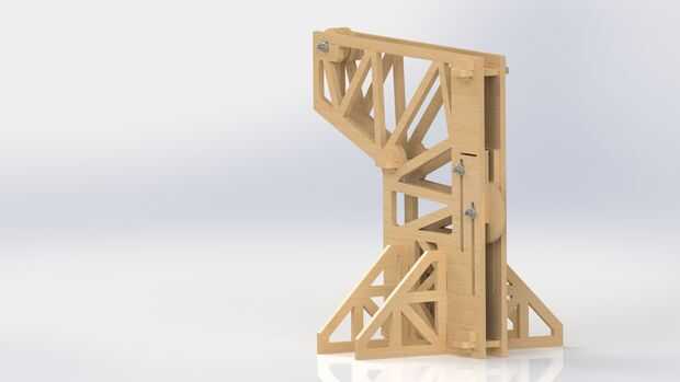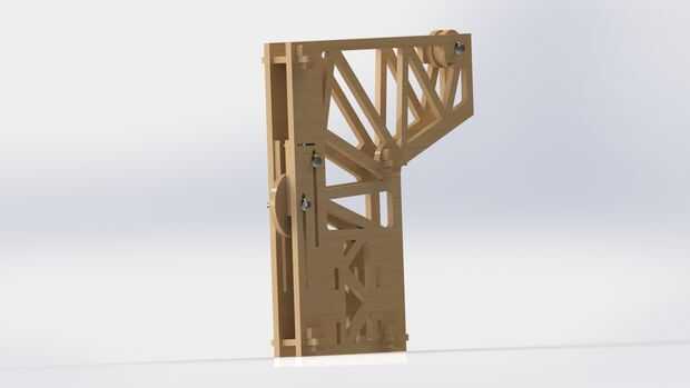 Grúa hidráulica por: Martin, Niklas, Andreas y Kristian.Cómo hacer una grúa hidráulica con 600 x 600 x hoja de mdf de 6 mm. dos surringes, un tornillo y un tubo de plástico.Esta grúa fue diseñada con solidworks, lazer cortado y montado para un proyec