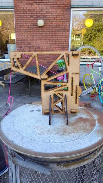 Grúa hidráulica por: Martin, Niklas, Andreas y Kristian.Cómo hacer una grúa hidráulica con 600 x 600 x hoja de mdf de 6 mm. dos surringes, un tornillo y un tubo de plástico.Esta grúa fue diseñada con solidworks, lazer cortado y montado para un proyec