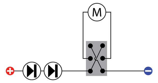 Soldar un trozo de alambre a un diodo y el otro extremo del cable al interruptor.