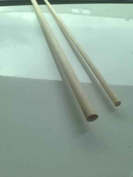 Para armar todas las juntas movibles en la grúa necesita usar una madera, redonda con un diámetro de 10 mm y uno de 6 mm de diámetro. Ambos con una longitud de aprox. 100 mm. Corte la madera mediante el uso de una sierra.