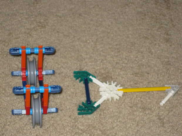 Este es el segundo de una serie de 3 ascensores nuevos en nuestra máquina de la bola de k'nex imposible.Esta elevación es bastante pequeña, lo que es útil para espacios pequeños donde tienes que hacer que la bola suba un poco. Ahora, sé que puedes es