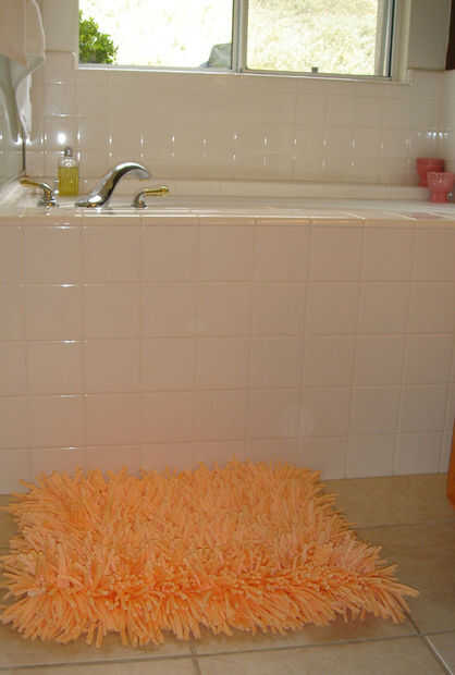 Fáciles manualidades con rollos de tejido: alfombra de los pies acogedor