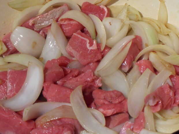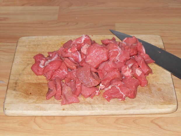 Paso 4: Cortar en cuadritos y freír la carne de vacuno