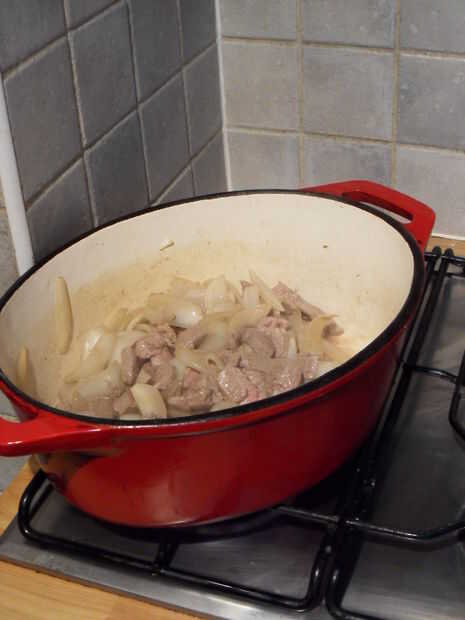 Gire la encimera a un fuego medio-alto y añadir la carne de vacuno a la cacerola. Fríe hasta que la carne es de color marrón. Resista la tentación de remover demasiado.