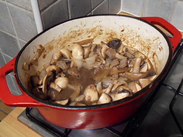A continuación añadir unos 300ml de agua hirviendo o lo suficiente para venir a mitad de camino a la cima de la capa de goo de pie. Deja en la placa de cocción a fuego medio para permitir que para espesar mientras prepara la masa.