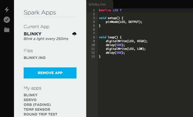 Nota: La línea: "Spark.publish("myHook01")"... myHook01 es sensible a mayúsculas y será el nombre de su webhook. Vamos a llegar a esto más adelante.