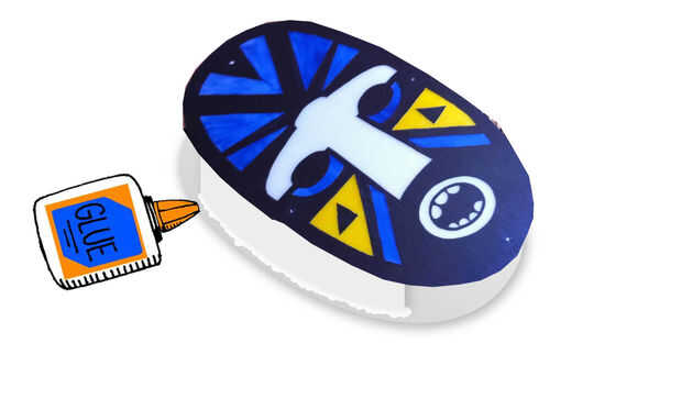 De epoxy se aplica a los bordes de los paneles laterales y colocarlos rápidamente contra la parte trasera de la otra máscara oval.