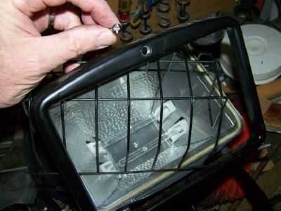 Luces de la tienda vienen con una cesta de alambre protector diseñada para tocar la cara de vidrio caliente. Proyecta sombras débiles en cuadrícula. No desea que las sombras que a través de sus fotos acabadas. Puedo sacar un tornillo en la parte superior de la luz y abrir el marco en la cara para extraer la cesta.