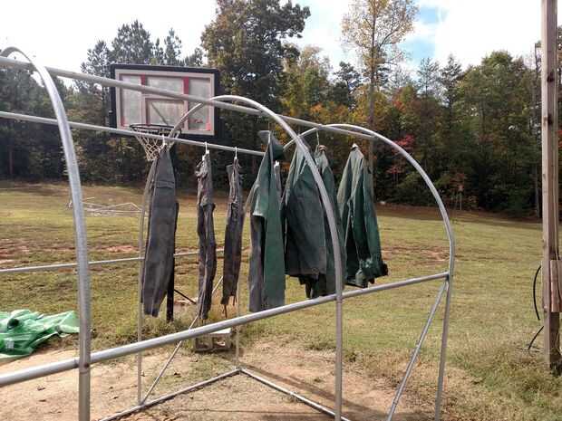 Capa tras capa que hemos pintado, que permite unas horas de secado entre cada capa, al final que todo lo seco bien. Pintura tuvo lugar durante unas semanas debido a un montón de lluvia, colgaría en este invernadero base fuera para pintar y trasladado luego en cada noche en el garaje. Madre naturaleza seguramente determinará cuánto tiempo llevará este proceso con la humedad y lluvia así que permitir tiempo suficiente para el secado. Seguir pintando hasta llegar a brillo y cobertura total.