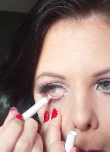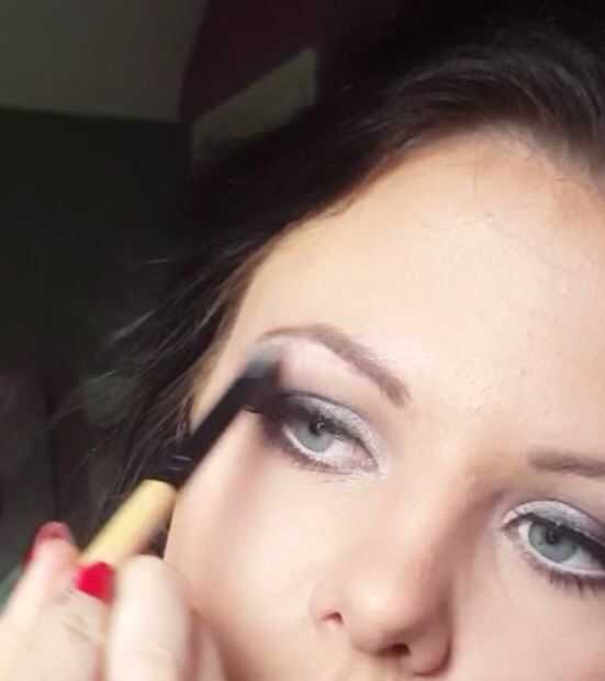 Entonces solo se aplica cualquier rimel y pestañas falsas que normalmente le gustaría utilizar. También aplico un trazador de líneas blanco de la línea de flotación sólo ayuda a mantener los ojos abiertos y grandes. También tomar una sombra de ojos blanca y esto se aplica en el hueso de la ceja para dar un poco de resalte a los ojos.