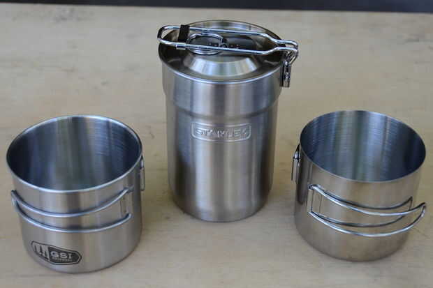En la foto de arriba el GSI Glacier botella copa (a la izquierda) tiene el labio todavía en el lugar y la Ozark Trail Copa de botella (a la derecha) muestra la Copa con su labio quitado. La tapa del Kit de campamento de Stanley y la tapa DIY trabajarán en dos tazas después de modificar las tazas.