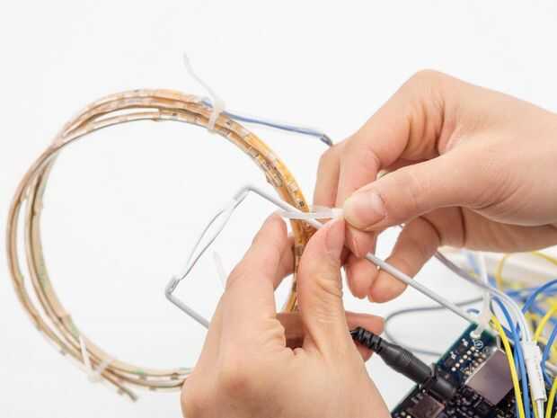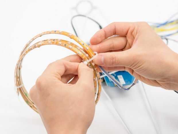• Lazo de los LEDs azul y asegure con abrazaderas de plástico