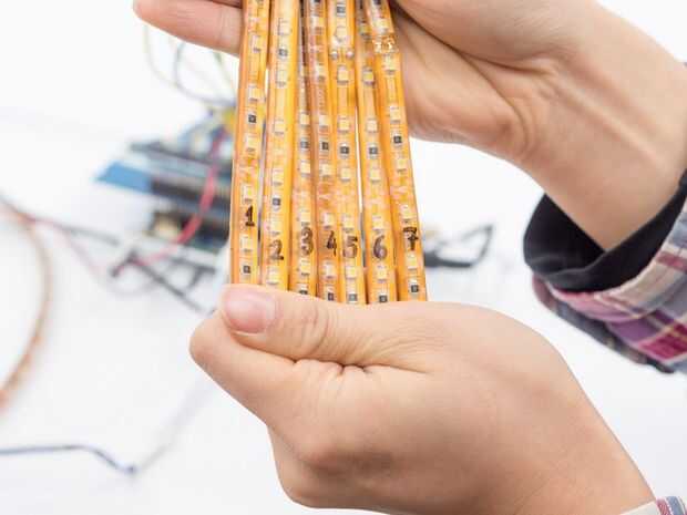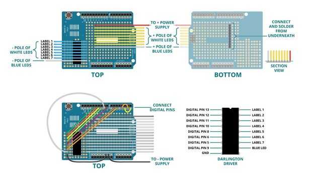 • Tomando nota de los pines digitales, etiqueta el LED blanco tiras como sigue: