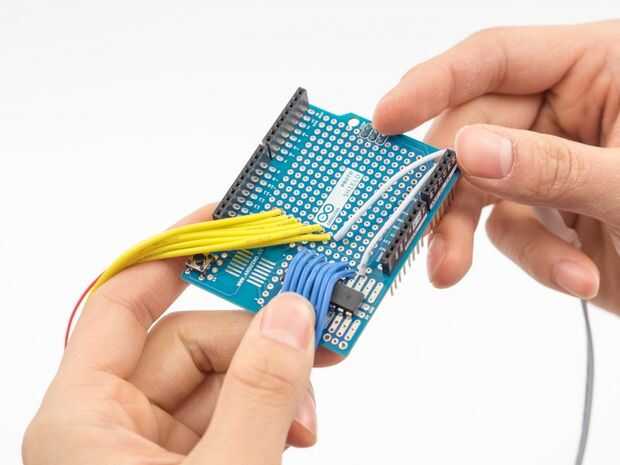 Paso 8: Conecte los cables y montar el controlador de Darlington en escudo de prototipo