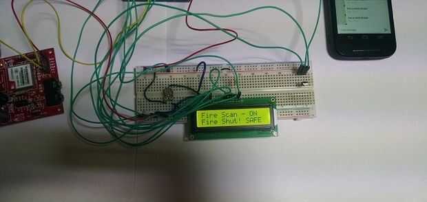 GSM, detección de incendios basado en microcontrolador y sistema de alerta de SMS, usa Sensor de temperatura LM35 y MQ2 humo detección y 16 x 2 LCD se utiliza para mostrar la temperatura y el nivel de humo, sobre límite de puntos se establecen dentro